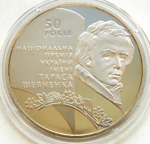 Монета присвячена 50-річчя Національної премії України імені Тараса Шевченка